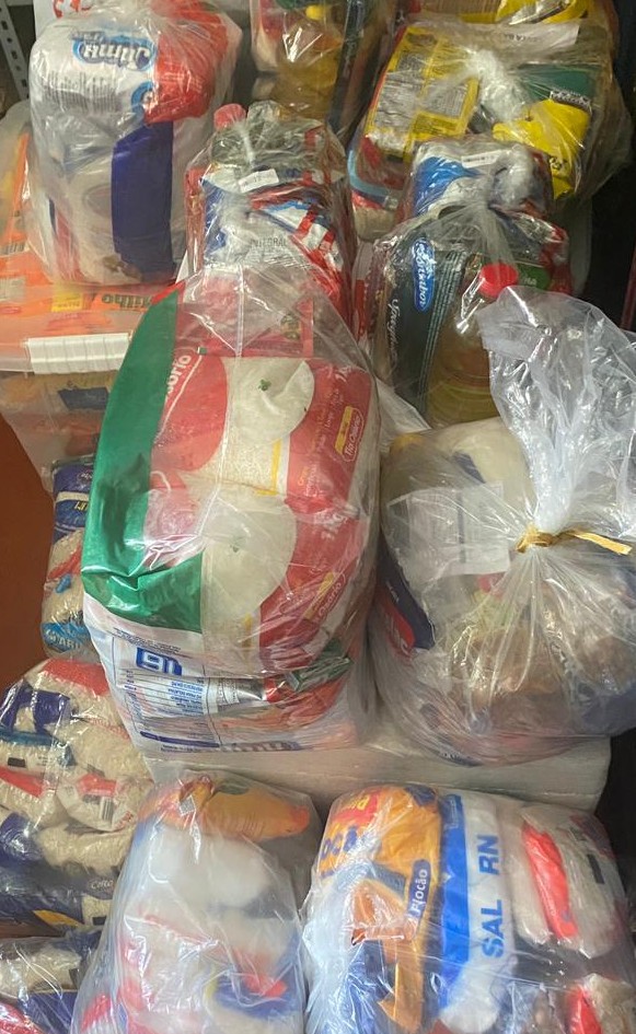 As cestas distribuídas foram cuidadosamente organizadas, contendo itens essenciais para o sustento das famílias com:
