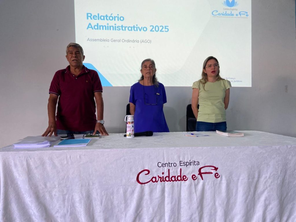 No dia 26 do mês de abril de 2026, na sede social do Centro Espírita Caridade e Fé, reuniram-se os sócios efetivos desta instituição para realização da Assembléia Geral Ordinária do ano em curso.