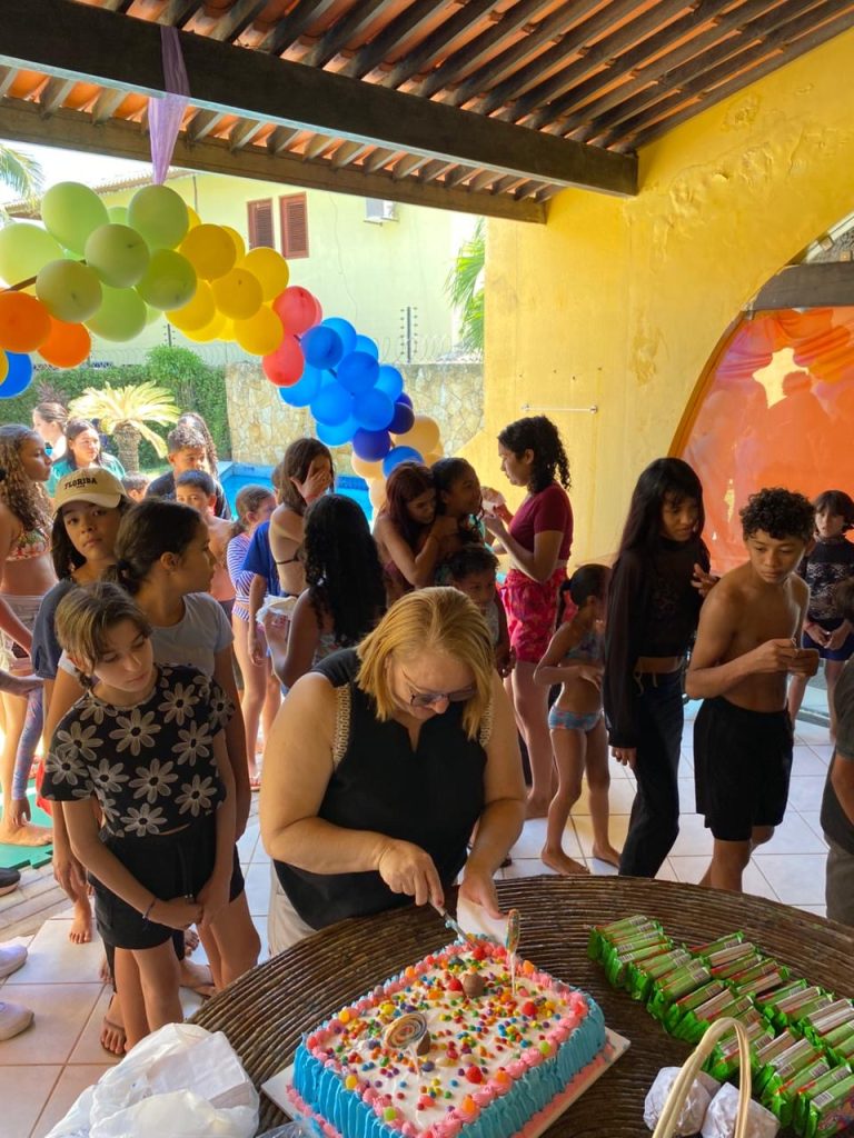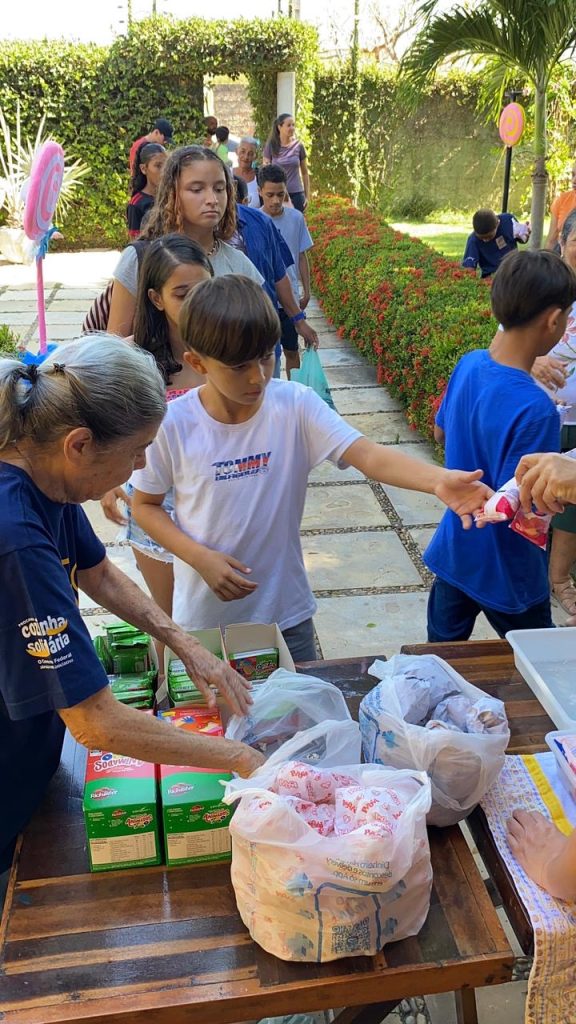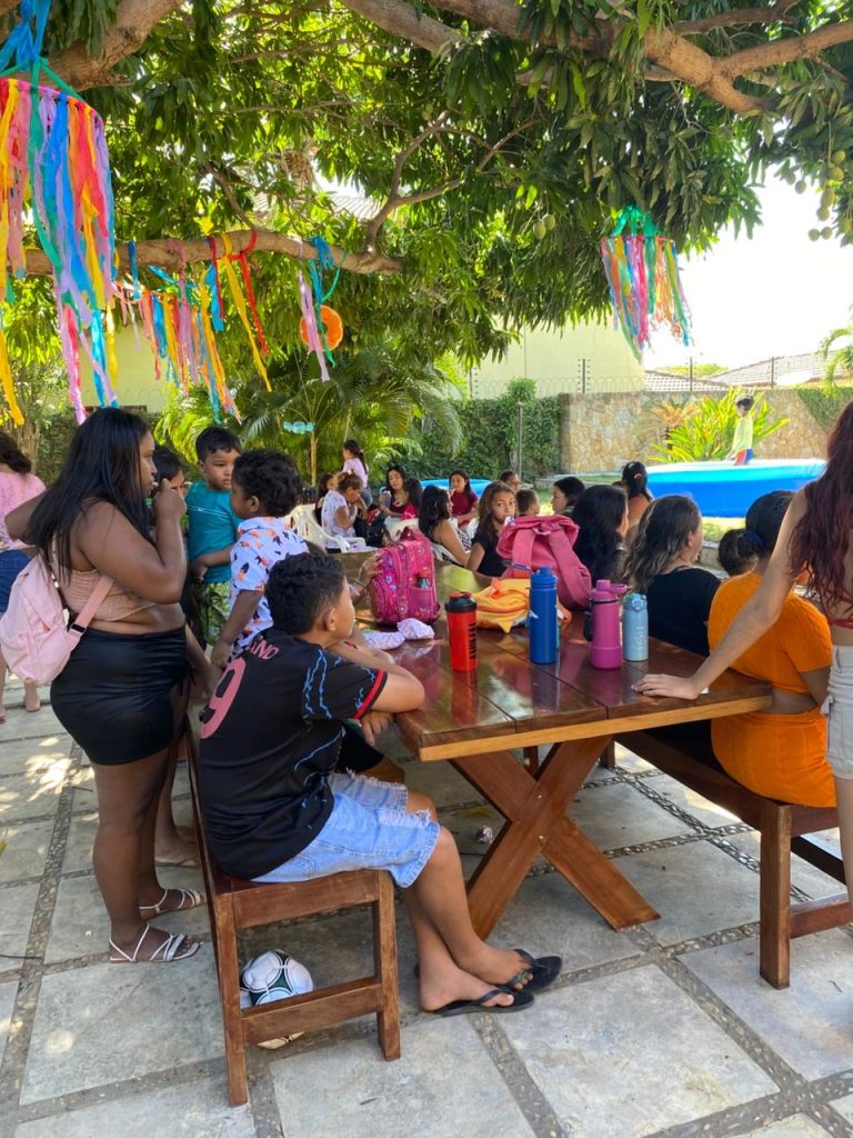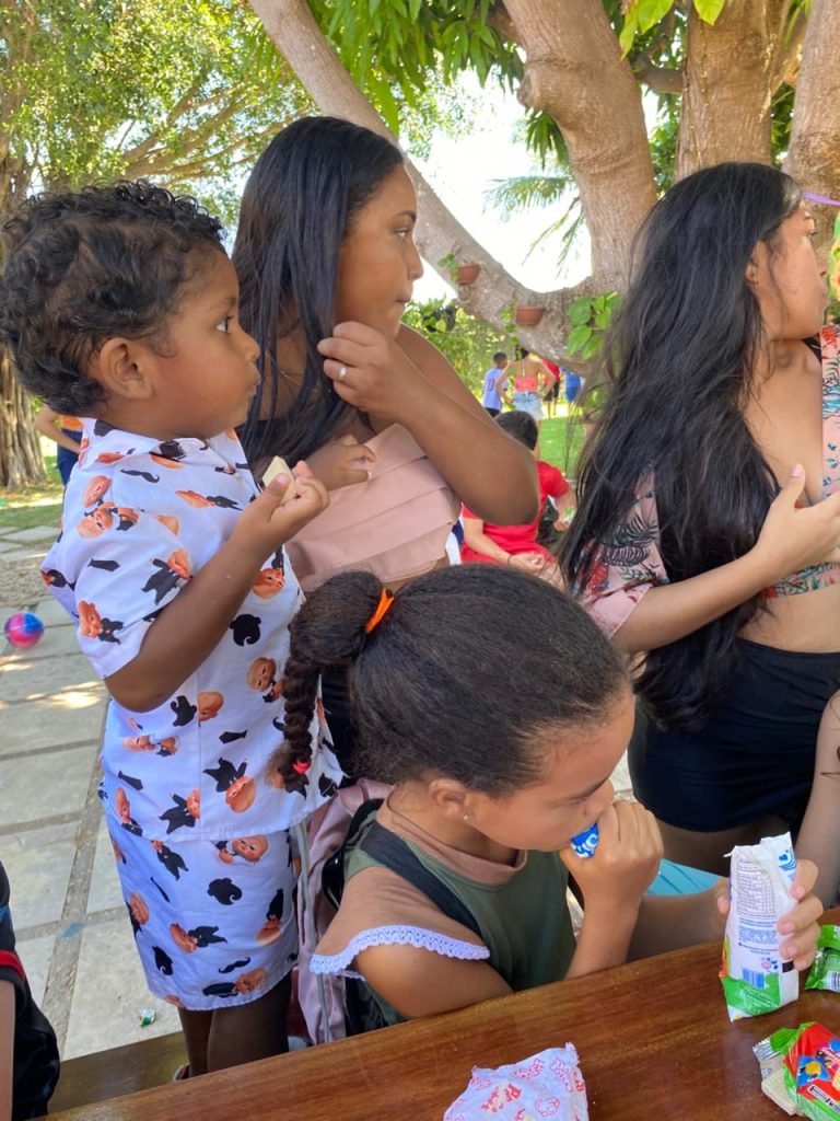 Os participantes também saborearam cachorro-quente, bolo e suco, seguido de uma série de brincadeiras e atividades recreativas. As crianças se divertiram em piscinas infláveis e na piscina grande, além de participarem de jogos com bola, como vôlei, futebol e basquete. Durante a manhã, foram servidos kreps, mini pizzas e pipoca, preparados por voluntários.